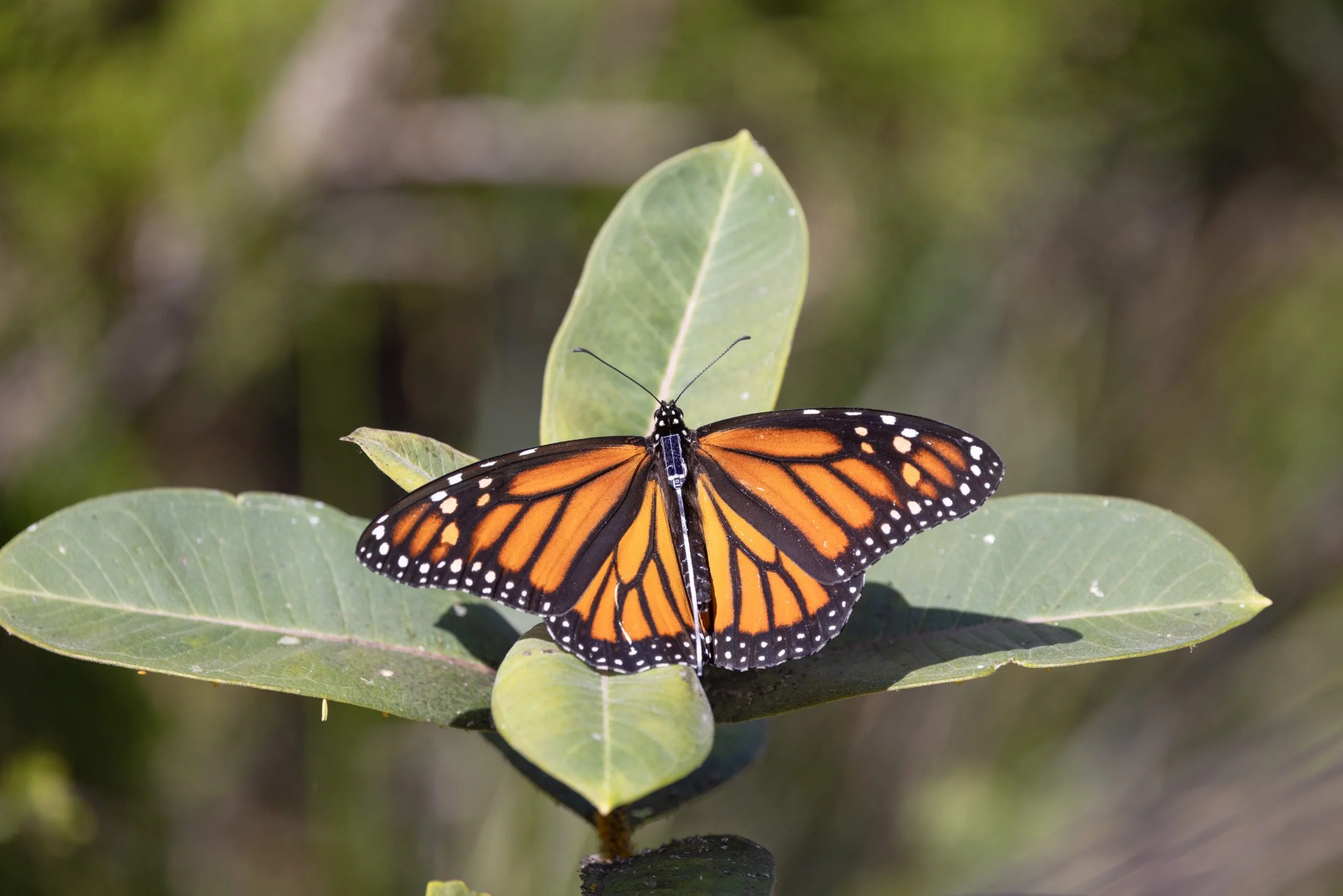 Tagged Monarch Butterfly. Photo credit Kalvin Chan from motus.org